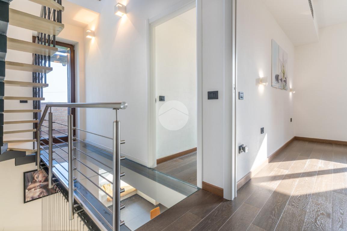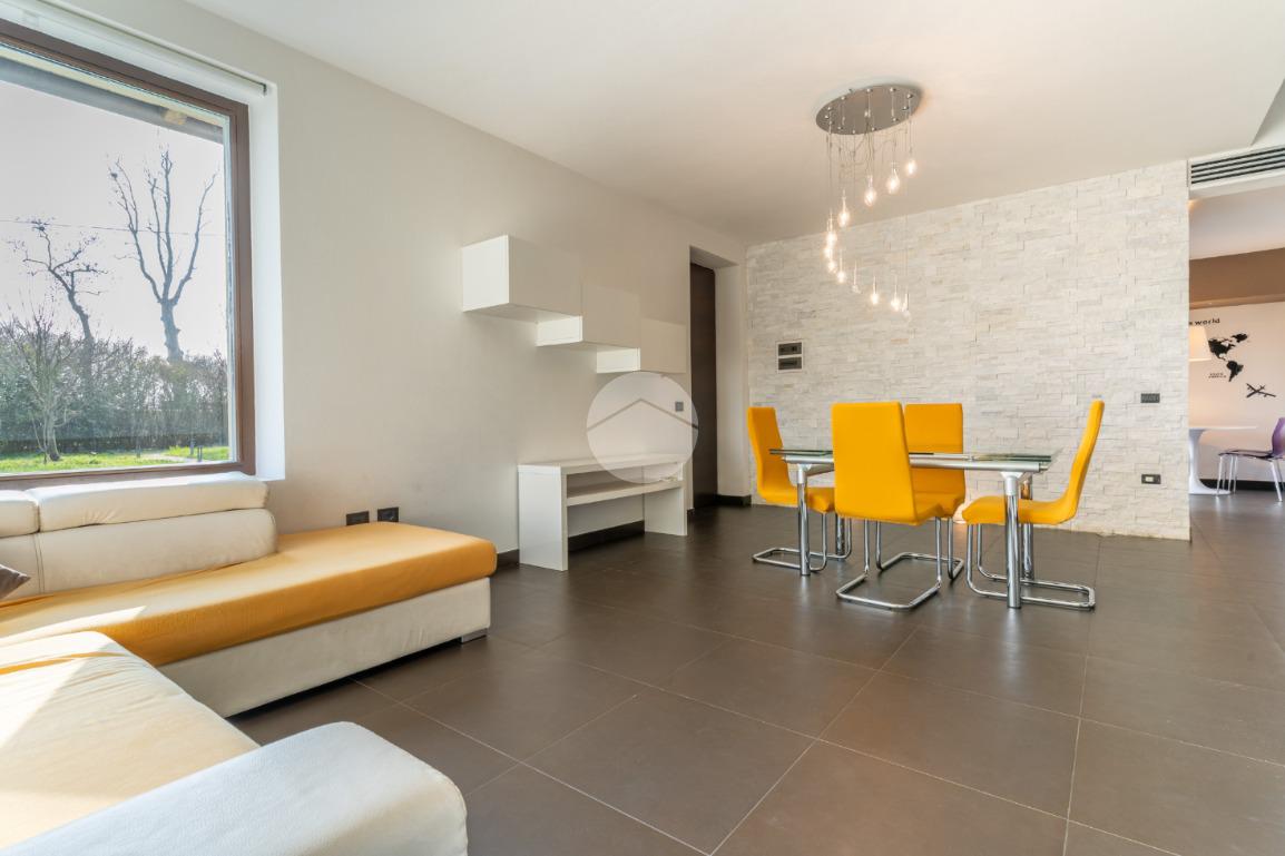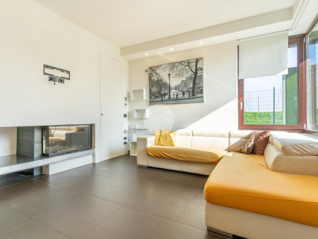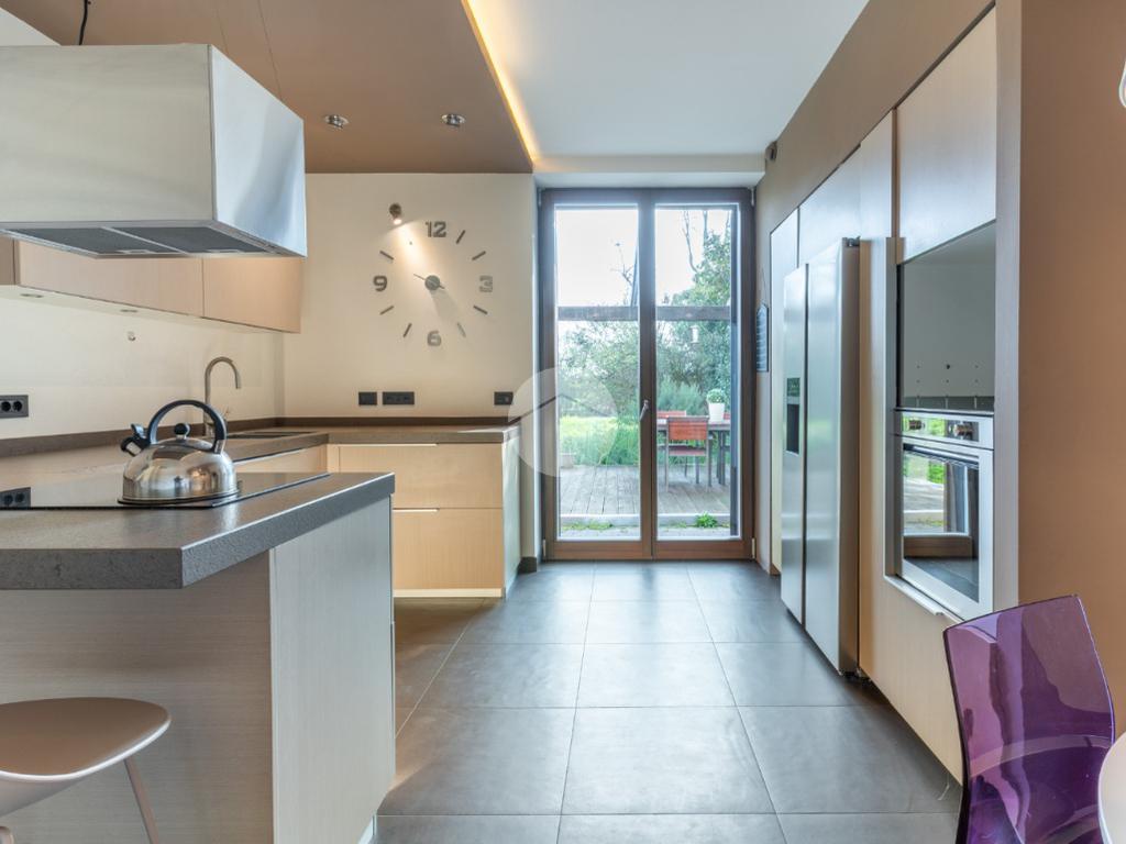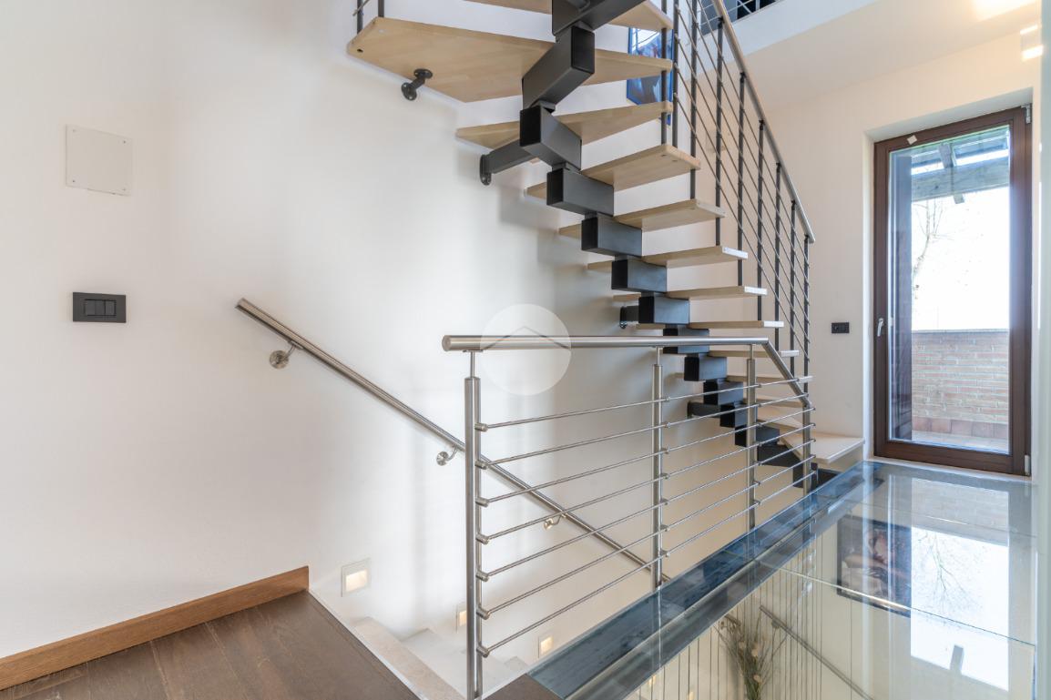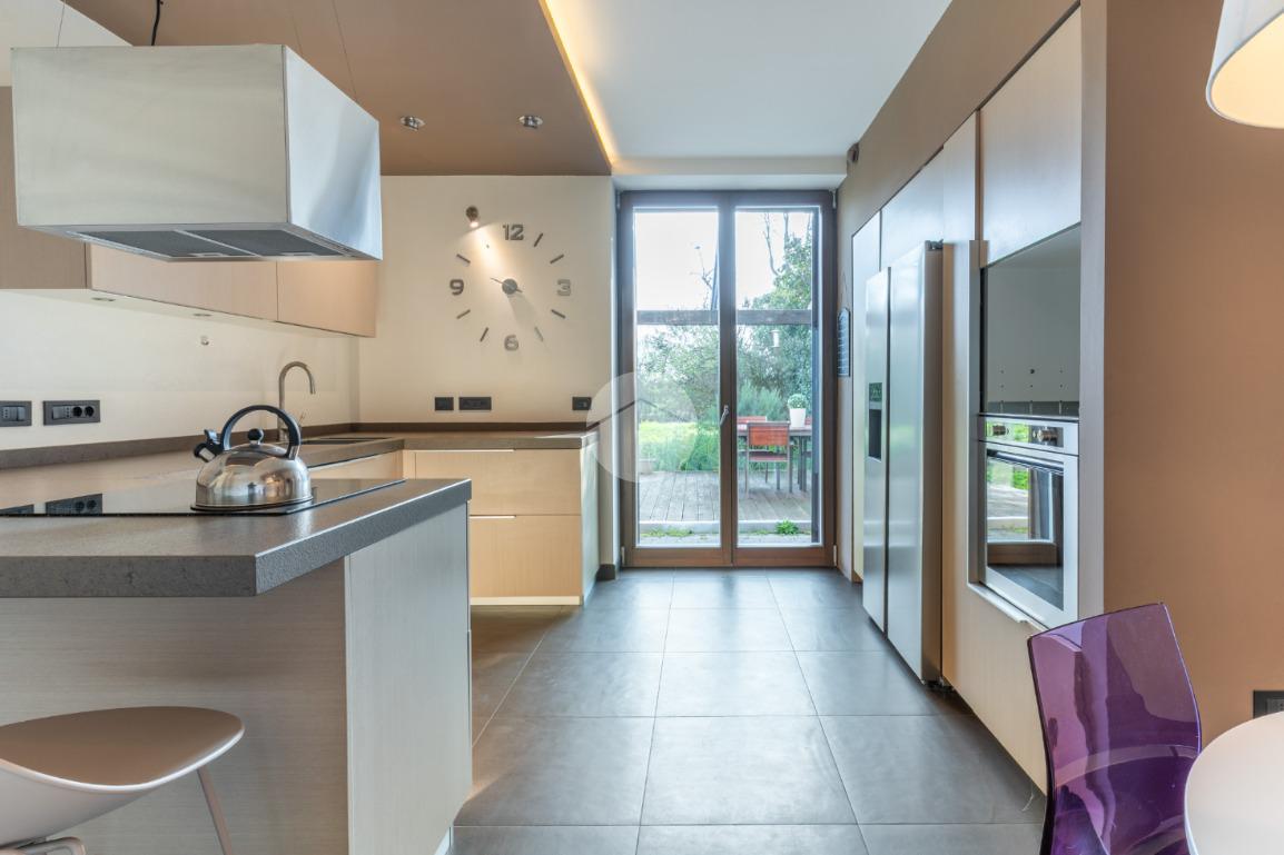 VIGARANO PIEVE: A venti minuti dal centro di Ferrara, e a cinquecento metri dal centro abitato di Vigarano Pieve, proponiamo villa, pari al nuovo, in classe A4, unica nel suo genere, per chi cerca comfort, tecnologia e massima efficienza energetica. Entrando comodamente con l'auto da cancello automatizzato, ci accoglie l'ampia autorimessa completamente indipendente dall'abitazione, completa di accesso pedonale, e l'elegante spazio verde esclusivo di circa 700 metriquadri piantumato, dotato di illuminazione notturna, irrigazione automatica e completato da corsello d'accesso in autobloccante. Comoda anche l'area pranzo esterna allestita con gazebo e pavimentazione in legno, elegante e suggestiva per passare ore serene all'esterno durante la stagione estiva. La casa sviluppa su tre livelli. Al piano terra, la porta blindata apre sul luminoso salone, arricchito da termocamino a legna e da ampie vetrate che affacciano sul giardino. La grande cucina abitabile con zona pranzo accede al giardino tramite comoda porta finestra. Si prosegue con un disimpegno che conduce alla zona antibagno allestita ad uso lavanderia e al bagno con doccia walk in. Salendo la scala di design, si arriva al primo piano dove un meraviglioso ballatoio con pavimentazione in vetro ci conduce alla camera da letto padronale con grande bagno in suite, dotato di doccia e vasca idromassaggio, completa la camera la cabina armadio finestrata. Al piano è presente una seconda camera da letto anche lei dotata di bagno in siute. Passando accanto alla portafinestra che accede al terrazzo, si sale al secondo piano, dove si apre una mansarda open space di quasi 50 metriquadri con predisposizione per il quarto bagno (accatastato). L'immobile ricavato dal recupero di una storica casa colonica con tecniche innovative, è l'unico passivo della provincia di Ferrara e consente un abbattimento quasi totale delle spese di riscaldamento, raffrescamento ed elettricità. (unica bolletta luce circa 150,00 euro/mese). La casa presenta finiture di pregio ed è circondata da imponente siepe sempreverde che garantisce privacy. Le dotazioni impiantistiche, fotovoltaico da 6,2 kWp, 4,8 kW di accumulo, ventilazione meccanica controllata, solare termico, pompa di calore DaiKin. L'immobile non è soggetto a tasse per lo scarico in fognatura ( sistema di subirrigazione autorizzata da ARPA). Libera subito. Contatta per ulteriori informazioni.